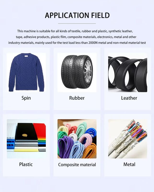 Suitable for plastic film, composite film, adhesive, adhesive tape, medical patch, protective film, release paper, rubber, artificial leather, paper fiber and other products tensile strength, peeling strength, deformation rate, breaking force, peeling force, opening force and other performance tests.